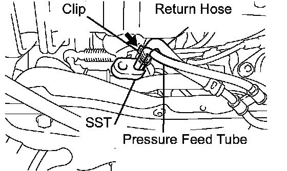 b. Using SST, disconnect the pressure feed tube.