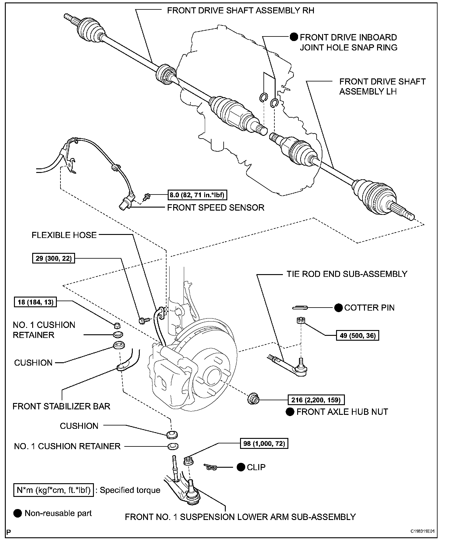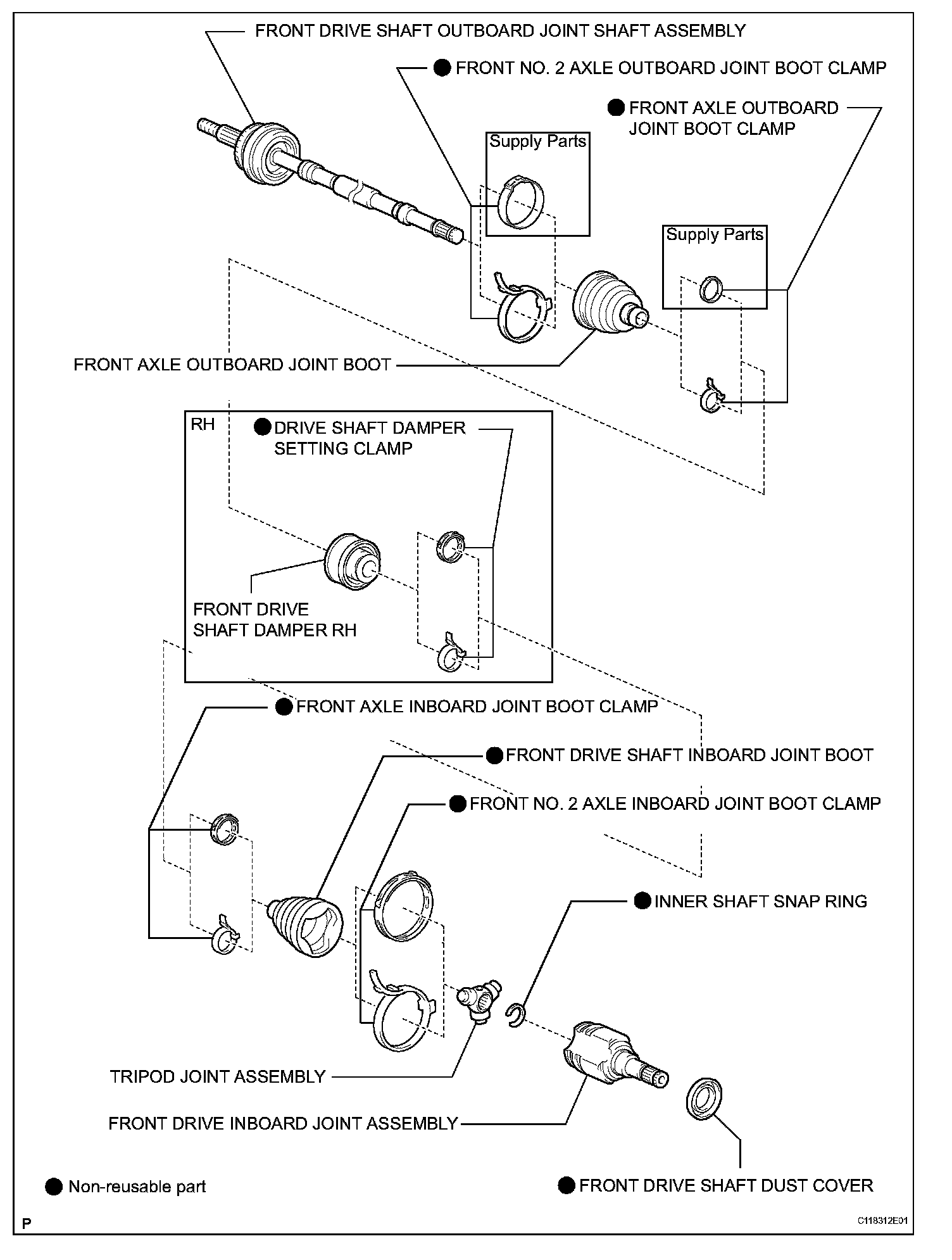FRONT DRIVE SHAFT ASSEMBLYCOMPONENTS: