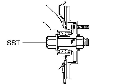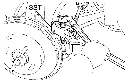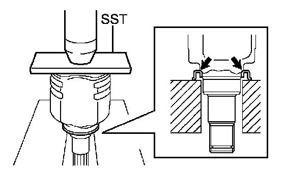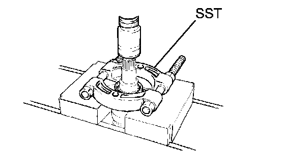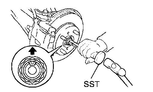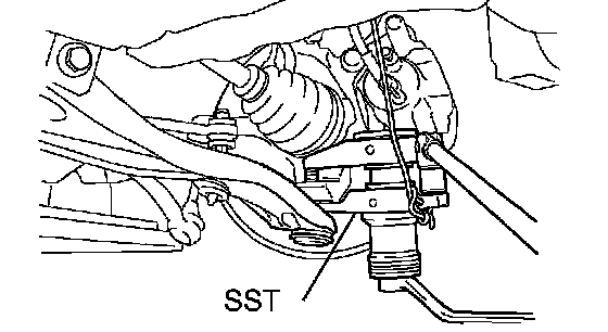 NOTICE: The hub bearing could be damaged if it is subjected to the vehicle's weight, such as when moving the vehicle with the drive shaft removed. Therefore, if it is necessary to place the vehicle's weight on the hub bearing, first support it with SST.