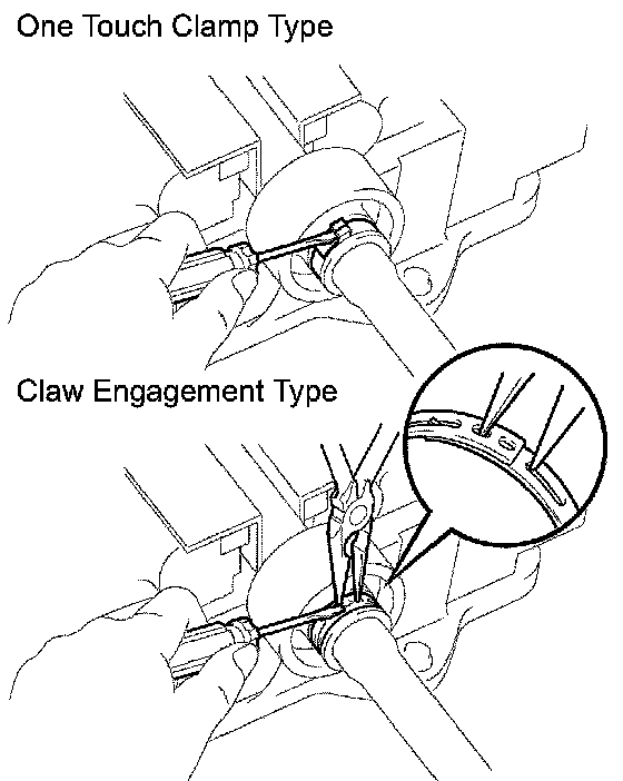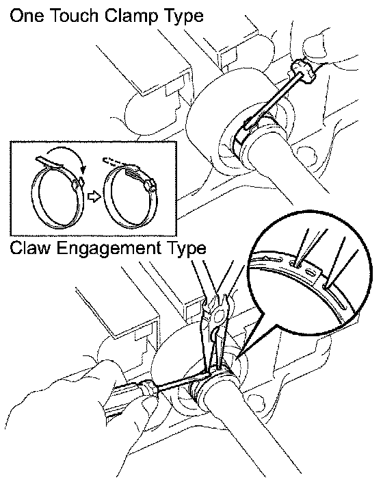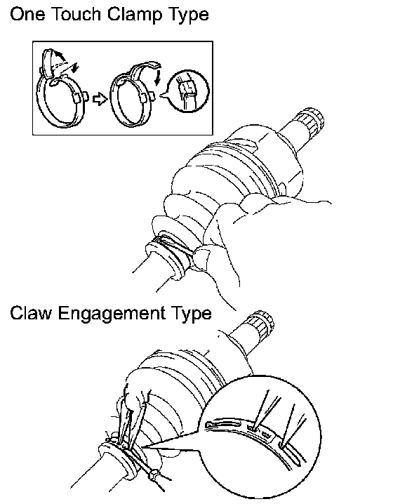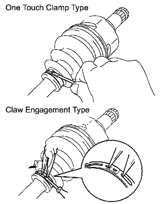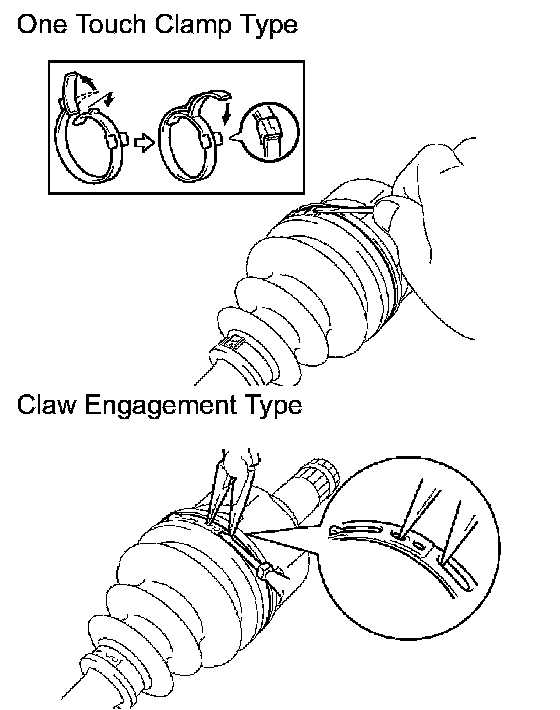 b. Claw engagement type: Using needle nose pliers, install the inboard joint boot clamp as shown in the illustration.
