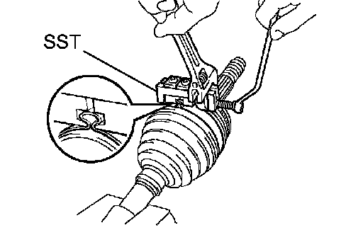 d. Tighten the SST so that the outboard joint boot clamp is pinched.