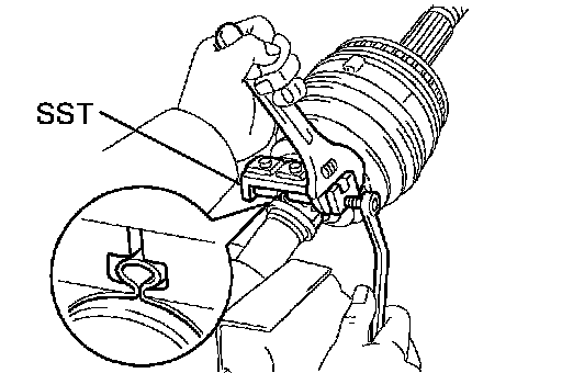 b. Place SST onto the No. 2 outboard joint boot clamp.