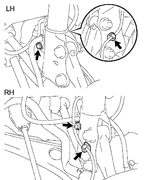 b. Remove the bolt and disconnect the front speed sensor from the steering knuckle.