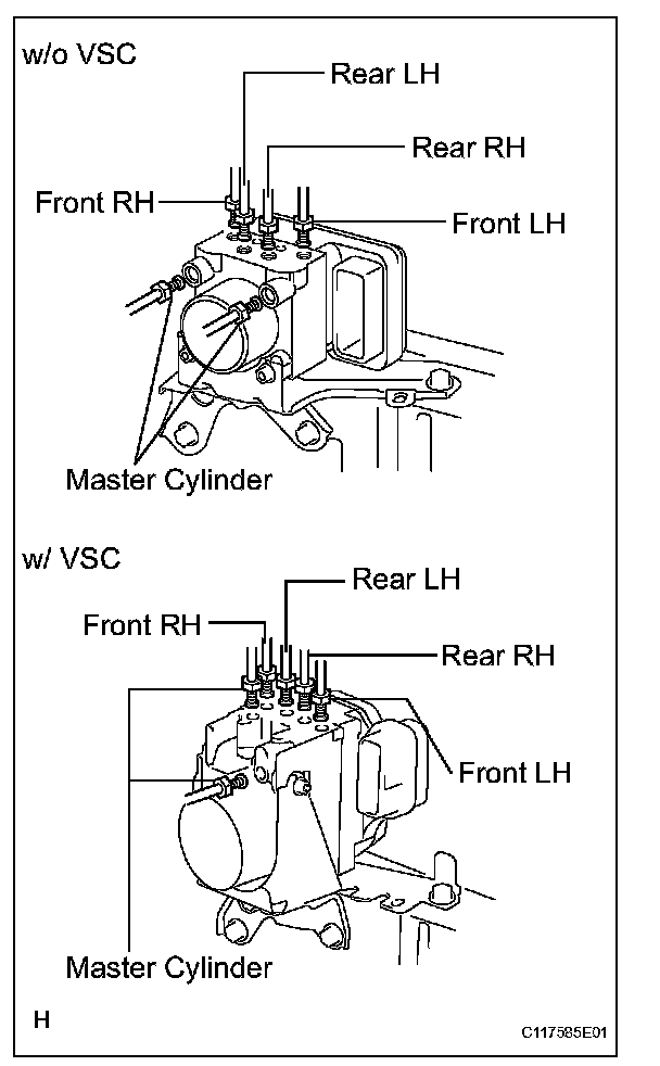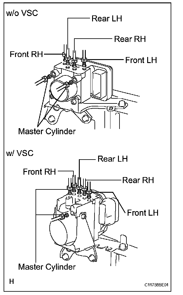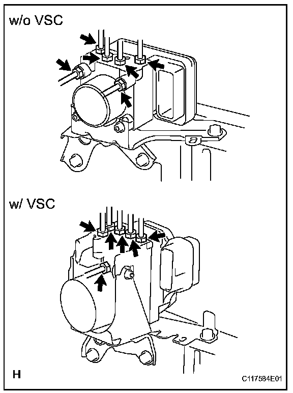 b. Using SST, connect the 6 brake lines to the correct positions of the brake actuator, as shown in the illustration.