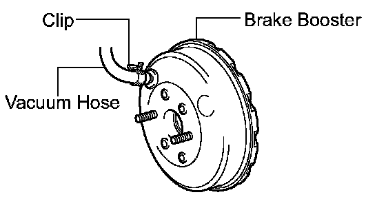 a) Slide the clip and disconnect the vacuum hose from the brake booster.