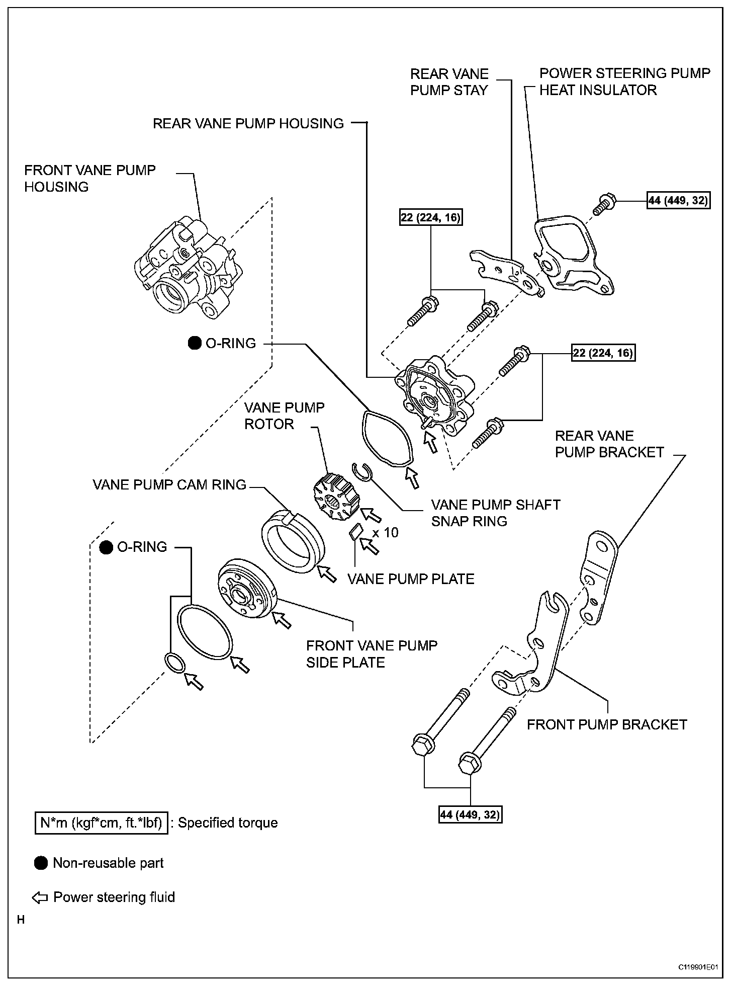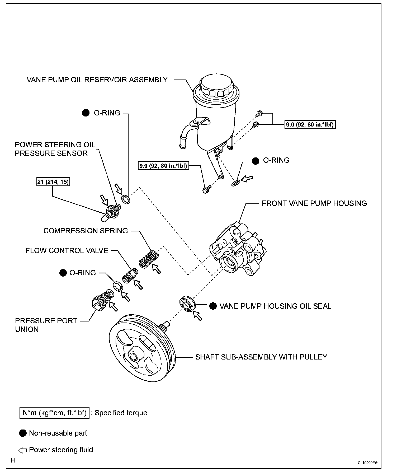 NOTICE: When installing, coat the parts indicated by arrows with power steering fluid.