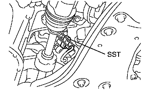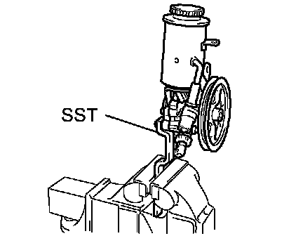 a) Using SST, disconnect the pressure feed tube from the vane pump.