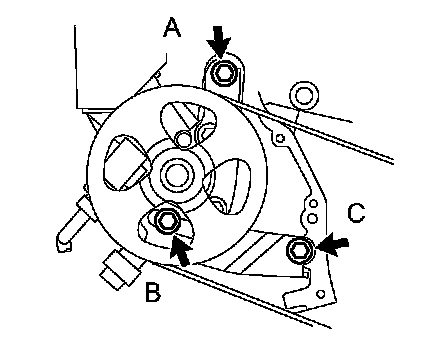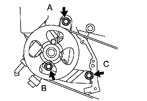 b) Loosen bolt A sufficiently so that the vane pump can be removed.