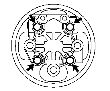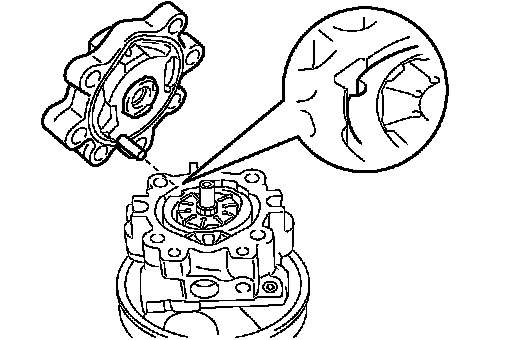 b) Align the straight pin of the rear housing with the dents of the cam ring, the front side plate and the front housing, and install the rear housing with the 4 bolts.