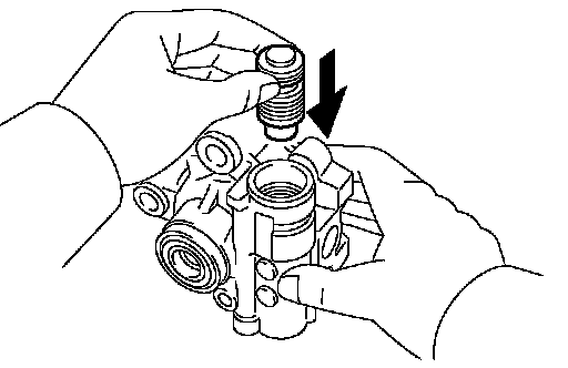 b) Check the flow control valve for leakage. Close one of the holes and apply compressed air of 392 to 490 kPa (4 to 5 kgf/cm2, 57 to 71 psi) into the opposite side hole, and confirm that air does not come out from the end holes.