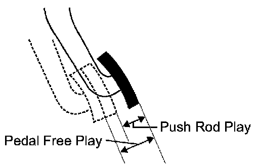 Standard push rod play at pedal top: 1.0 to 5.0 mm (0.039 to 0.197 inch)
