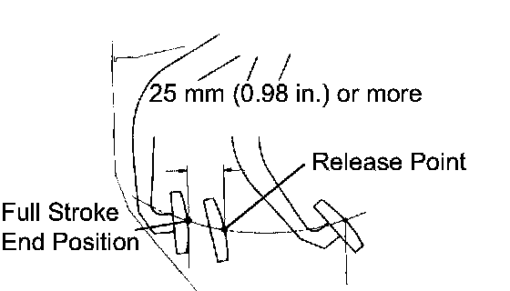 4) Gradually depress the clutch pedal and measure the stroke distance from the point that the gear noise stops (release point) up to the full stroke end position.