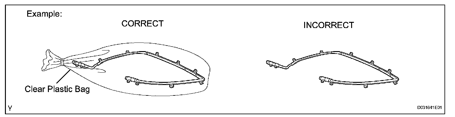 1. Always place a removed or new curtain shield airbag assembly in a clear plastic bag, and keep it in a safe place.