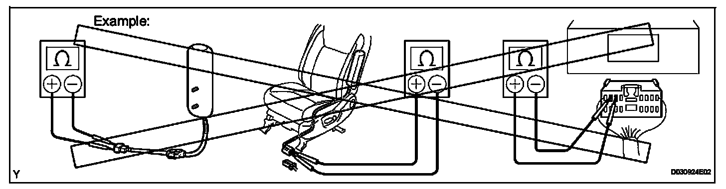 1. Never measure the resistance of the seat outer belt. This may cause the pretensioner of the seat belt to activate, which could cause serious injury.