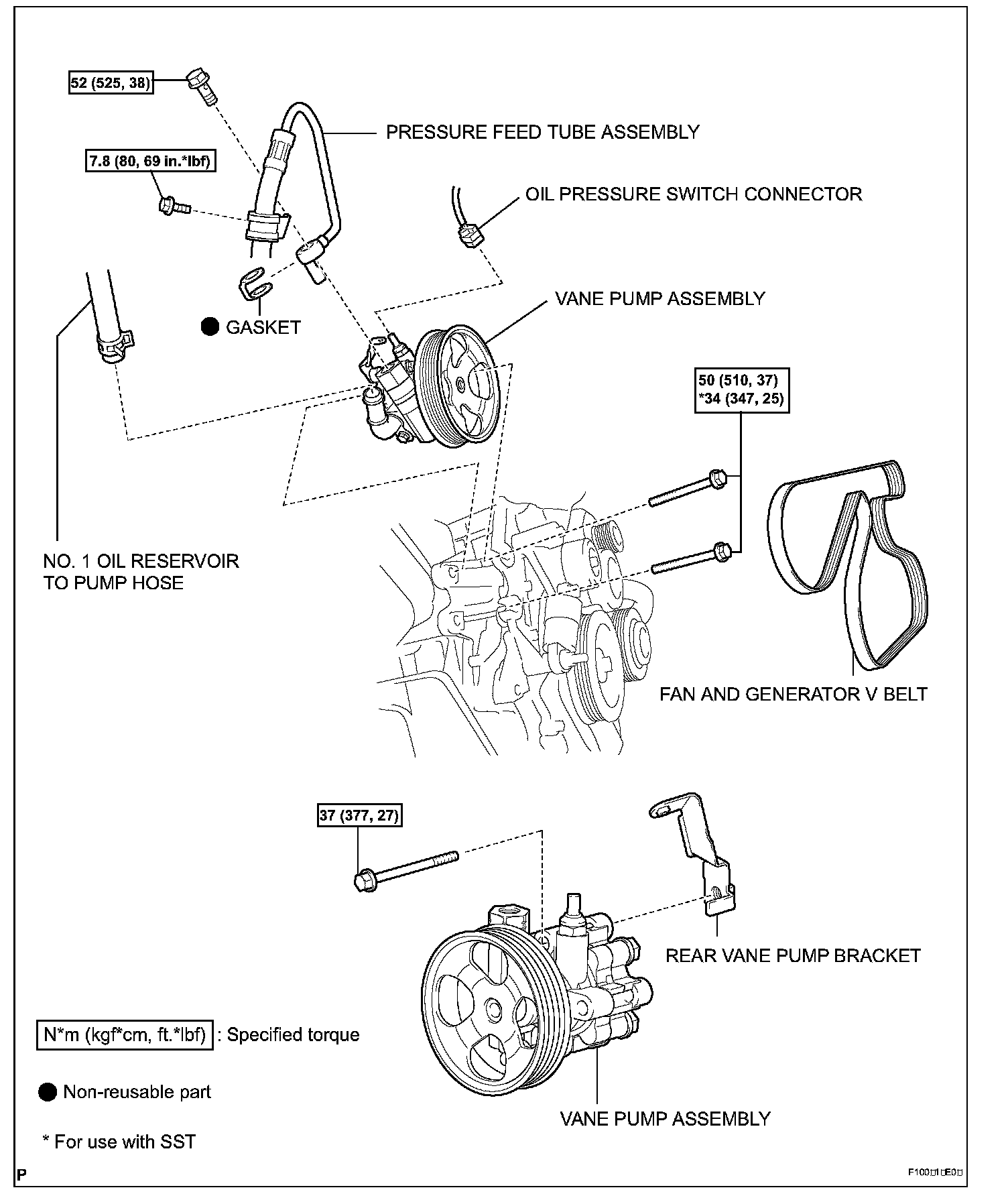 a. Install the pressure feed tube and a new gasket to the vane pump with the union bolt.