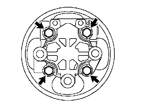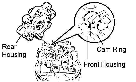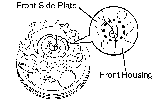 b. Align the straight pin of the rear housing with the dents of the cam ring, front side plate and the front housing, and install the rear housing with the 4 bolts.
