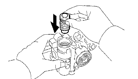 a. Coat the flow control valve with power steering fluid and check that it falls smoothly into the flow control valve hole under its own weight.