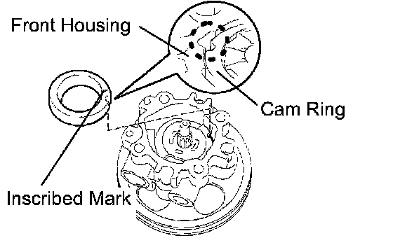 a. Align the dent of the cam ring with that of the front side plate, and install the cam ring with the inscribed mark facing upward.
