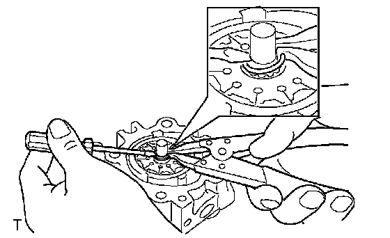 a. Using 2 screwdrivers, remove the snap ring from the shaft.