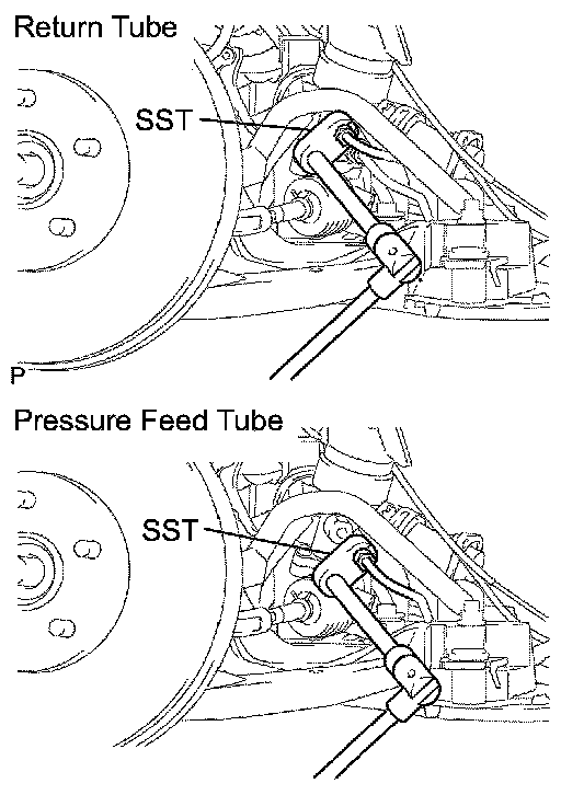 b. Using SST, disconnect the pressure feed tube.