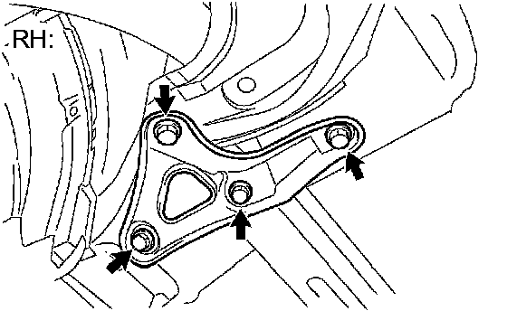 e. Remove the 4 bolts and crossmember bracket RH.