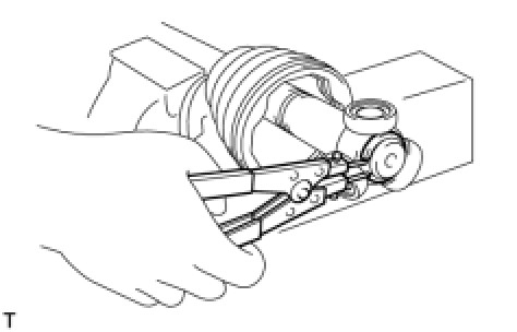 (a) Using a screwdriver, remove the outboard joint boot clamp, as shown in the illustration.