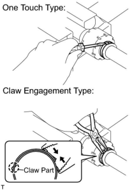 (b) Using needle-nose pliers, remove the drive shaft damper clamp, as shown in the illustration (for Claw Engagement Type).