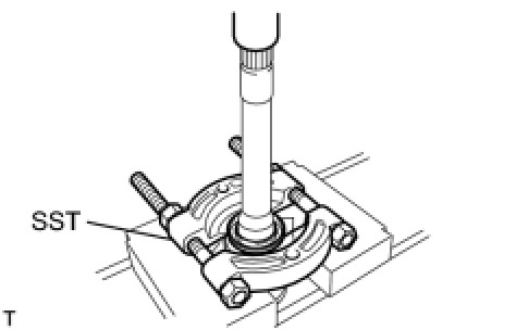 (a) Using SST and a press, press out the drive shaft dust cover.
