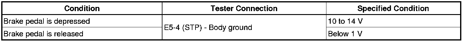 (c) Measure the voltage according to the value(s) in the table below when the brake pedal is depressed and released.
