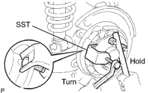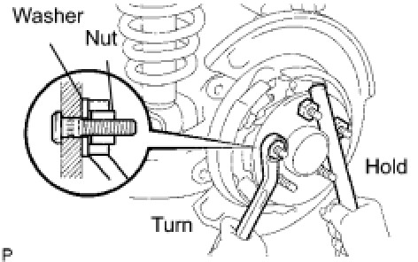 (a) Temporarily install the 2 nuts to the hub bolts as shown in the illustration.