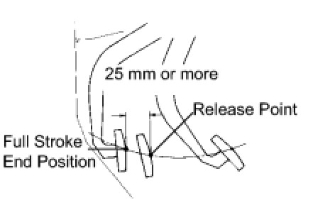 (4) Gradually depress the clutch pedal and measure the stroke distance from the point that the gear noise stops (release point) up to the full stroke end position.