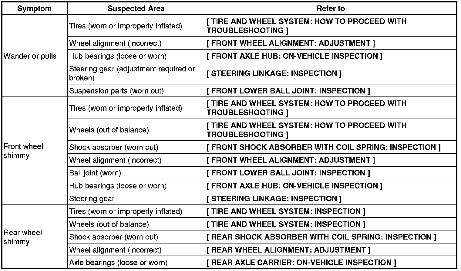 AXLE: AXLE SYSTEM: PROBLEM SYMPTOMS TABLE