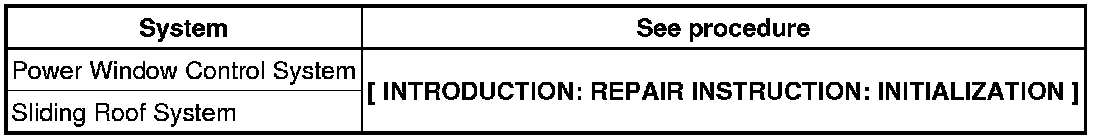 When disconnecting the cable from the negative (-) battery terminal, initialize the following systems after the cable is reconnected.