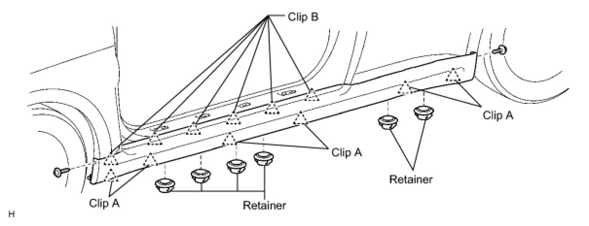 (a) Remove the 2 screws, 6 retainers, 2 grommets and 6 clips labeled A.