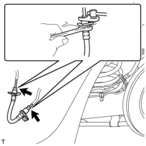 (a) Using a union nut wrench, separate the 2 brake tubes while holding the flexible hose with a wrench.