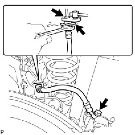 (a) Using a union nut wrench, separate the brake tube while holding the flexible hose with a wrench.