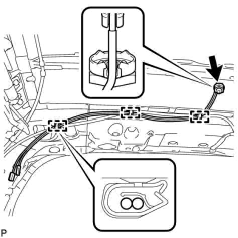 (d) Install the amplifier antenna cord into the 3 clamps.