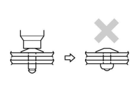 * Do not pry the rivet with the riveter, as this will cause damage to the riveter and mandrel.