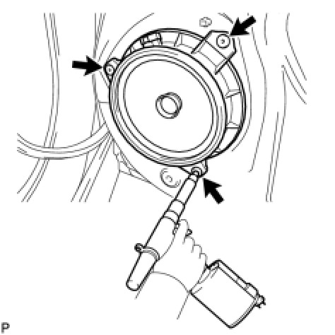 (a) Using an air riveter or hand riveter, install the rear speaker with 3 new strike rivets.