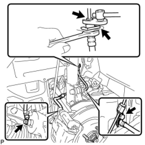 (a) Using a union nut wrench, separate the brake tube while holding the flexible hose with a wrench.