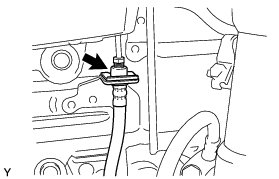 (a) Using a union nut wrench 10 mm, disconnect the brake tube while holding the front flexible hose with a wrench.