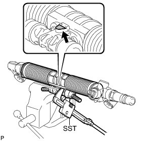 (a) Secure the steering gear assembly in a vise as shown in the illustration.