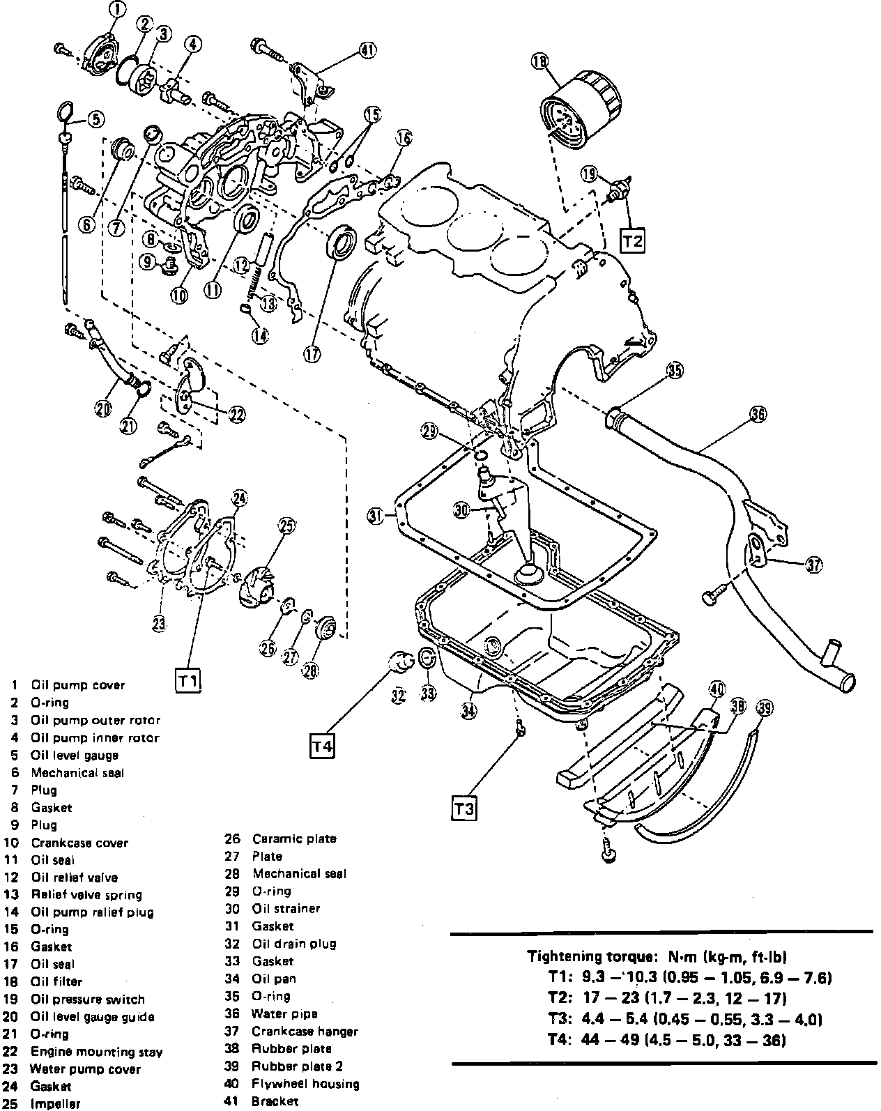 32. Install oil filter, engine mounting bracket and mounting stay.