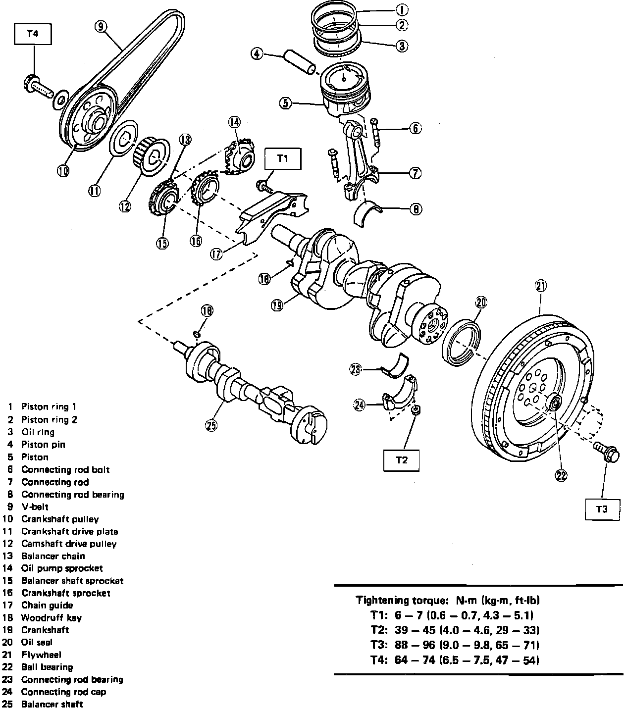 Fig. 32 Exploded View Of Crankshaft, Pistons, & Balance Shaft: