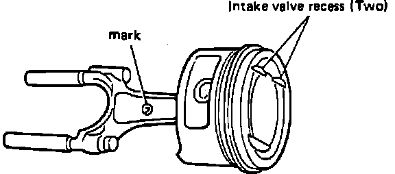 16. Assemble piston to connecting rod so that intake valve recesses on piston and crescent mark on connecting rod are positioned as shown, Fig. 33.