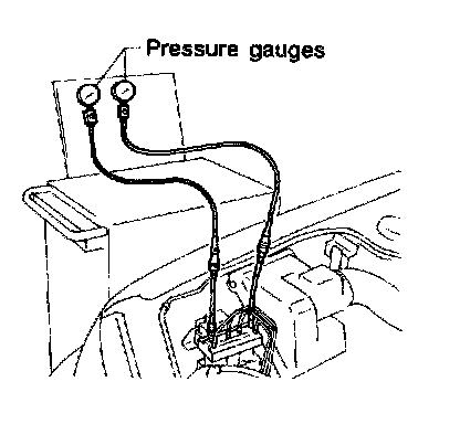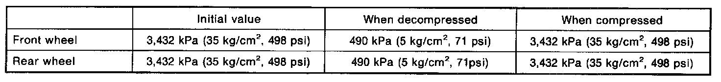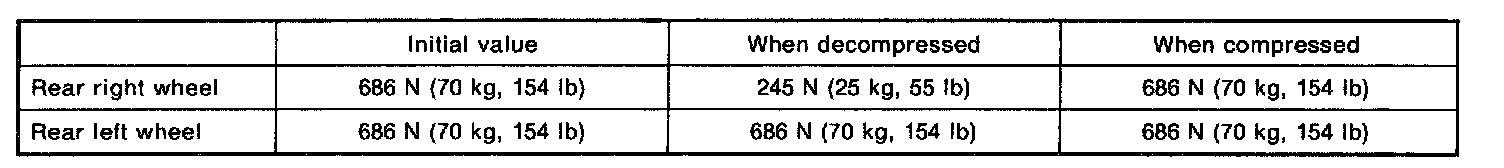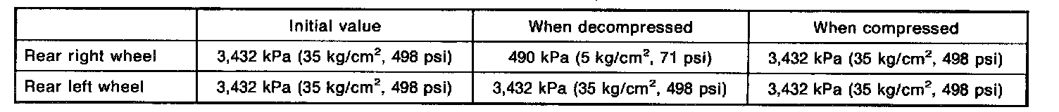 6) Read values indicated on the pressure gauge and check if the fluctuation of the values between decompression and compression meets the standard values. Also check if any irregular brake pedal tightness is felt.