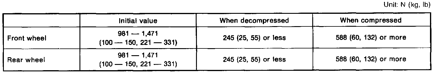6) Read values indicated on the brake tester and check if the fluctuation of values, when decompressed and compressed, meet the standard values.