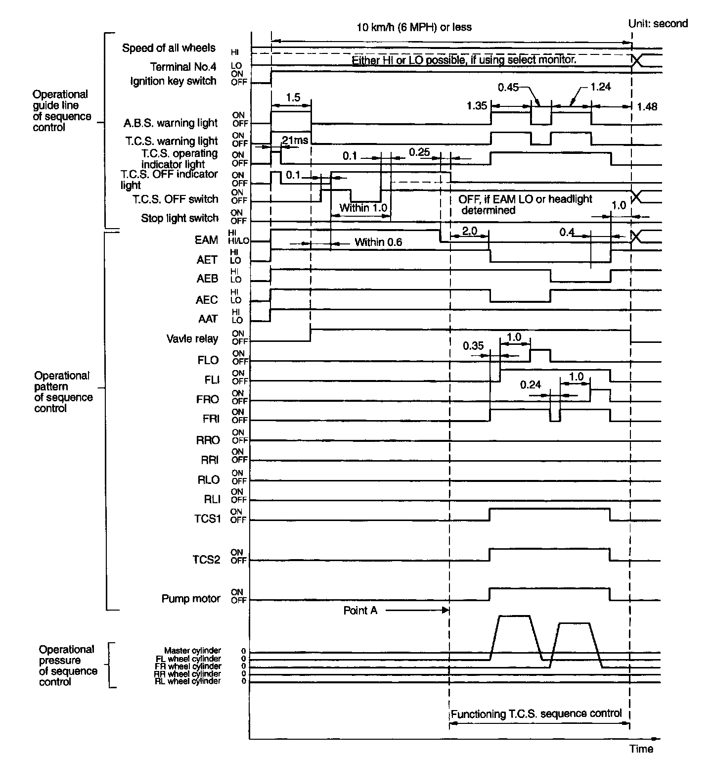 TCS Sequence Control1) Under the TCS sequence control, after the hydraulic unit solenoid valve is driven, the operation of the hydraulic unit can be checked by means of the brake tester or pressure gauge.