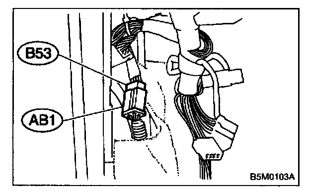 5. Disconnect body harness connector (B53) from connector (AB1).