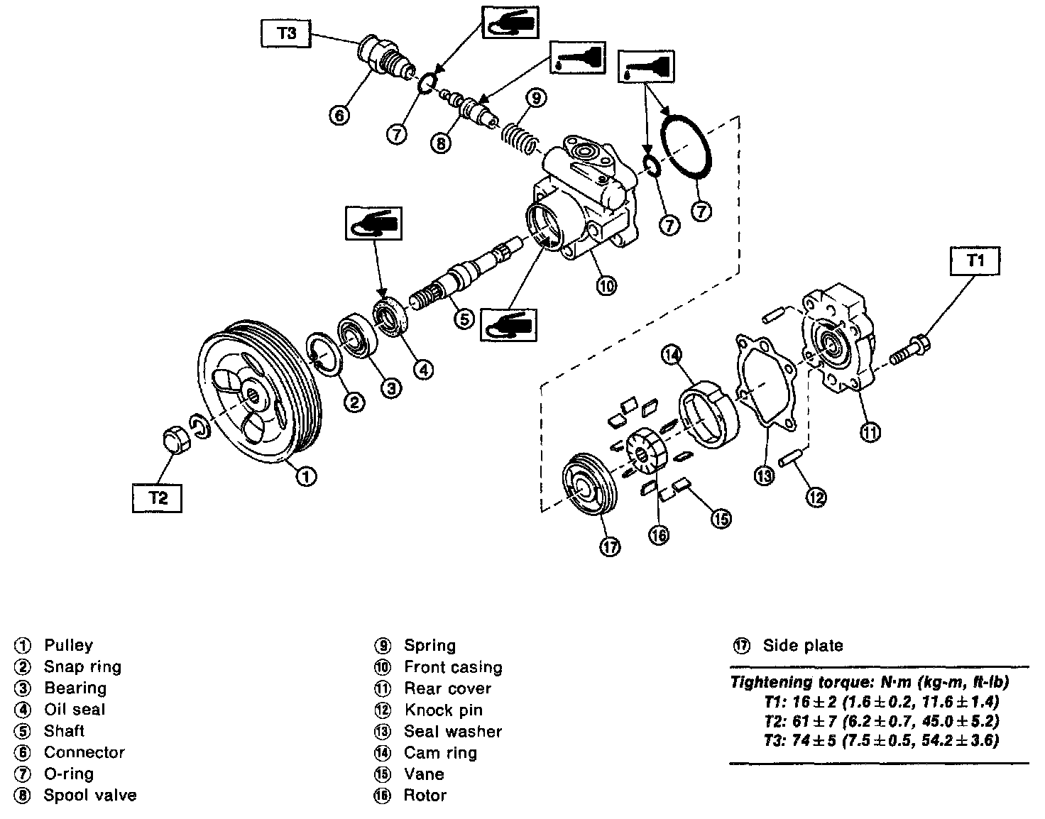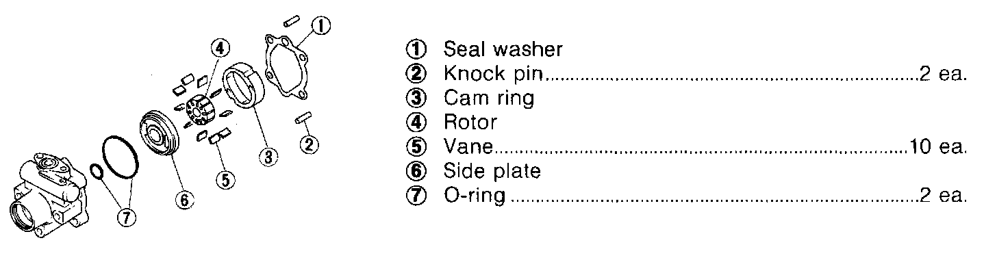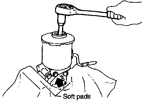 (1) Place oil pump in a vise, and remove two bolts which secure tank.